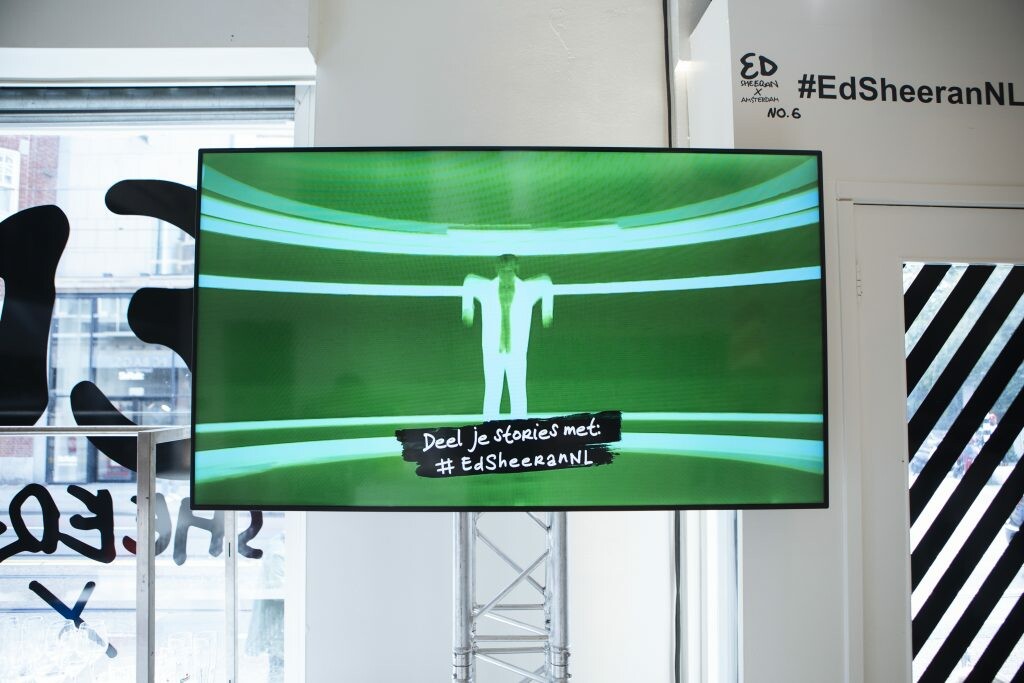Ed Sheeran ne peut pas être dans 30 villes à la fois. Nous avons souhaité créer un espace où les fans peuvent inter-agir avec l’artiste de la même manière qu’ils pourraient le faire en concert. Un concert est conçu par l’artiste, c’est sa musique, son décor, et nous voulions re-créer cet expérience avec le pop-up. De plus, nous savions qu’Ed Sheeran a beaucoup de fans aux Pays-Bas.