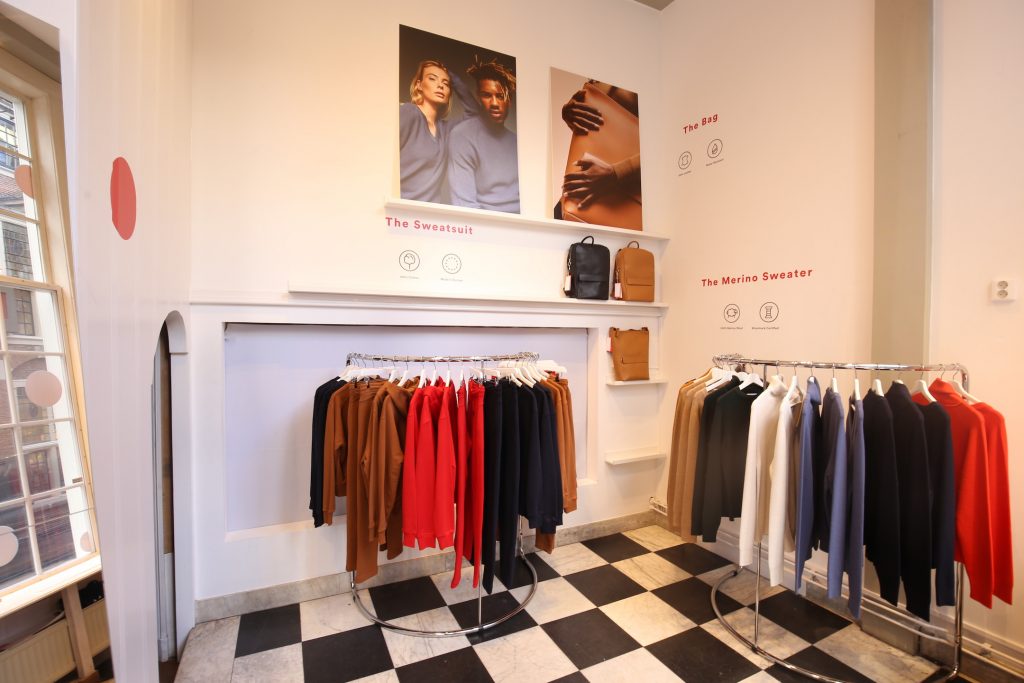 Staalstraat, dans laquelle se trouve notre pop-up store, est une très jolie rue. Nous avons pour voisins d’autres créateurs de mode néerlandais. On y vient pour faire du shopping : cela nous permet de toucher de nouvelles personnes. Beaucoup de touristes poussent par exemple notre porte et découvrent notre marque. Nous sommes toujours en réflexion sur l’emplacement idéal pour ouvrir une boutique à l’année. Les pop-up stores nous permettent de tester différents lieux et de nous faire une idée.