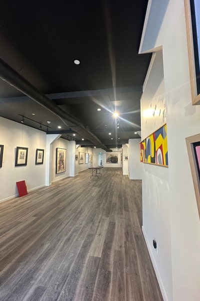 The gallery includes one bathroom, a basement level, and additional functional areas such as a backroom and a small storage space—perfect for organizing inventory or preparing installations. A back entrance provides convenient access for ...