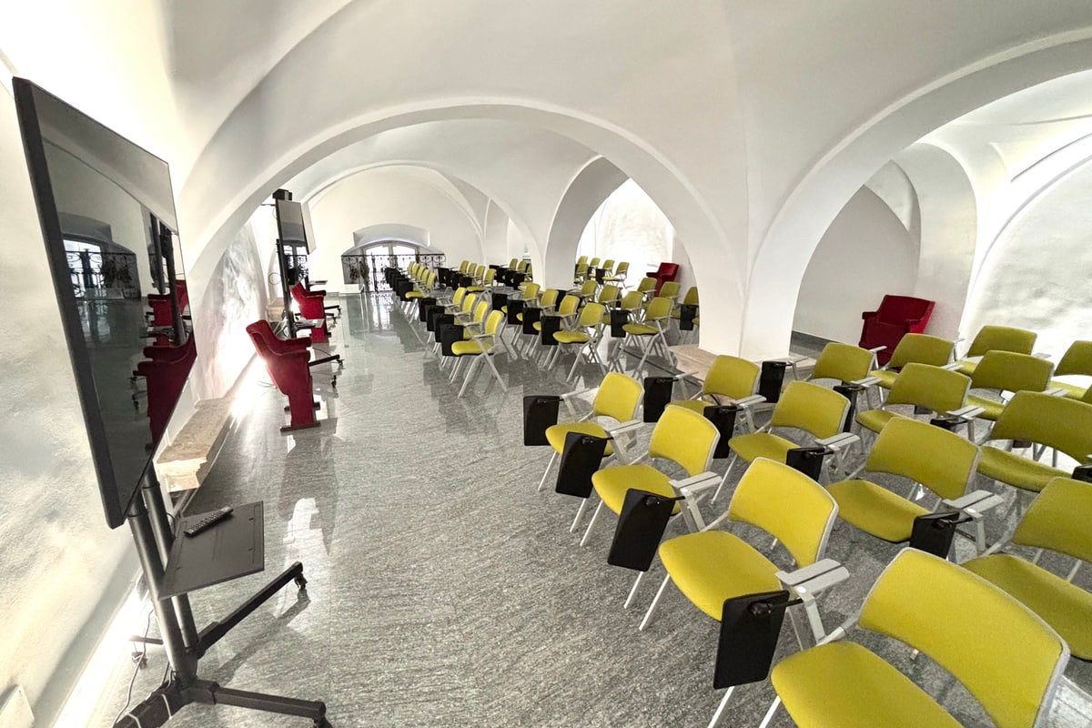 La sala convegni principale della palazzina è situata al piano superiore. Grazie alla sua ampiezza e alla capienza fino a 77 persone, è ideale per conferenze, presentazioni, convegni ed eventi aziendali. Lo spazio è dotato di impianto audio-video, proiettore, schermo, microfoni, illuminazione regolabile, climatizzazione e connessione Wi-Fi ad alta velocità. La sala consente diverse configurazioni di allestimento e garantisce comfort, visibilità e funzionalità per ogni tipologia di evento prof...