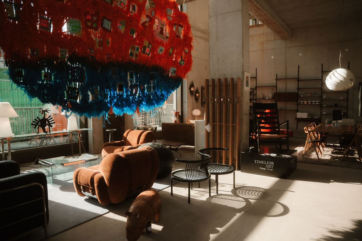 Showroom unit with vintage design and art. Can be rented with furniture or empty.