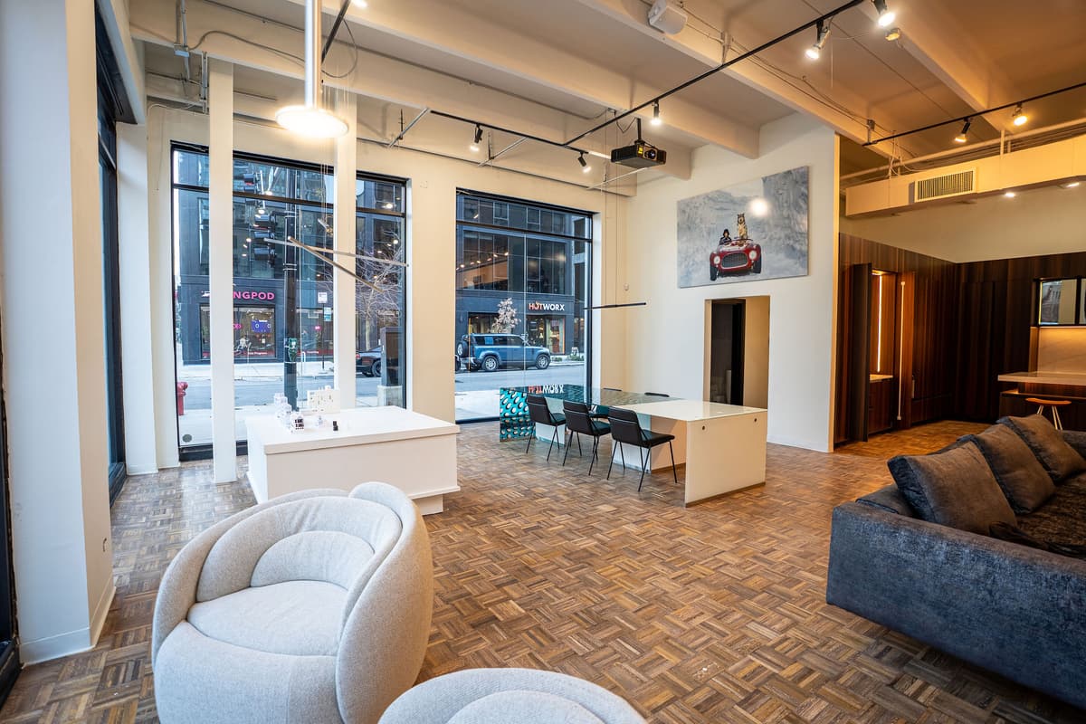 In Chicago's River North is a versatile industrial-chic venue designed for hybrid events, offering roughly 2,000 square feet across the Main Stage, Vault, and Forge. It provides a flexible space for corporate meetings, product launches, and social gatherings, allowing for customizable, combined setups to accommodate up to 350 guests.