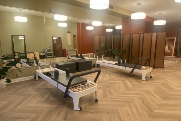 It’s currently set up as a Pilates studio, but can easily be adapted for a variety of uses. Equipment can be moved to create more open floor space depending on your needs.