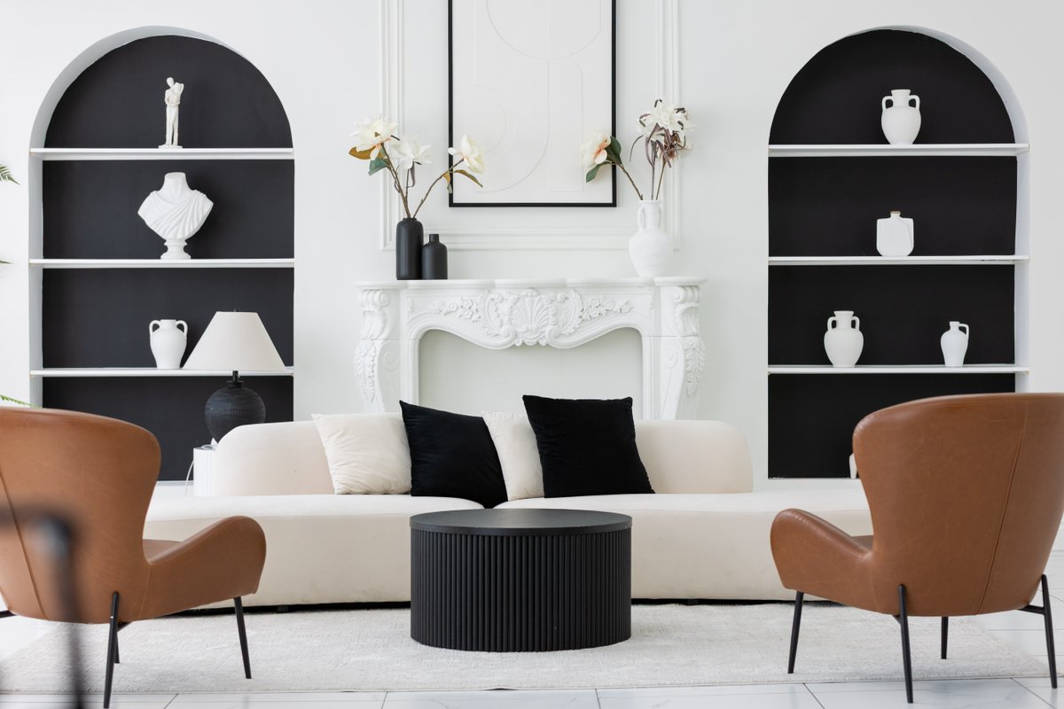 Haussmanian studio Decor with full of options, white walls, black walls, accent wall