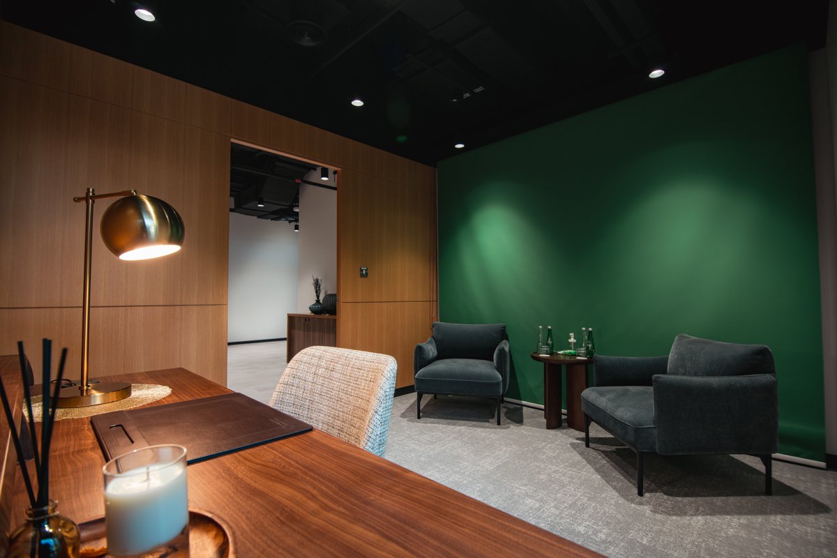 This cosy green room in the Nexus area of Expo City Dubai offers a private, well-appointed retreat for talent, speakers, or small creative teams. With space for up to four people, it is perfectly suited for use as a prep space during events, a quiet area for interviews or podcasts, or simply as downtime between sessions. The comfortable furnishings and discreet location provide a sense of privacy and focus, making it a valuable supporting space for larger productions or events taking place wi...