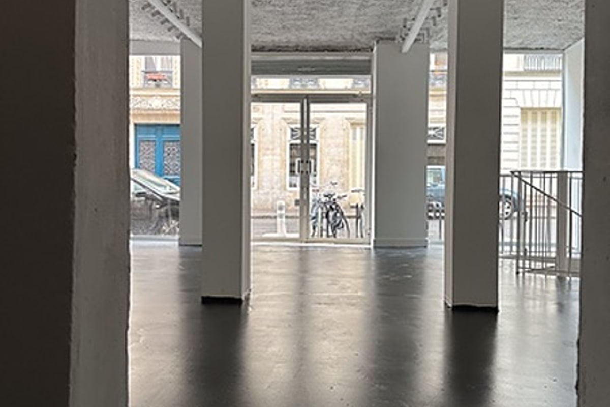 Espace de 1000 ft² au cœur du Haut Marais. Volume clair, généreux, en rez-de-chaussée, doté de deux très grandes baies toute hauteur ouvrant directement sur la rue, offrant une visibilité forte et une lumière naturelle abondante. Intérieur mêlant murs blancs et sol noir industriel, cadre neutre et contemporain adapté aux expositions, pop-ups et événements.