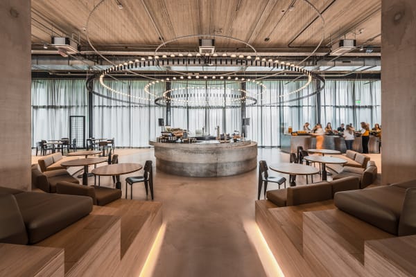 Onze eventspace in de Amsterdamse Houthavens is een open, industriële locatie van 800 m². De ruimte kenmerkt zich door een plafondhoogte van 5,5 meter en grote raampartijen, waardoor er overal veel daglicht binnenkomt. De vloer is een combinatie van hout en een strakke gietvloer. Door de modulaire opzet is de plek flexibel in te delen; zo is de aanwezige conversation pit indien gewenst om te bouwen tot een podium.