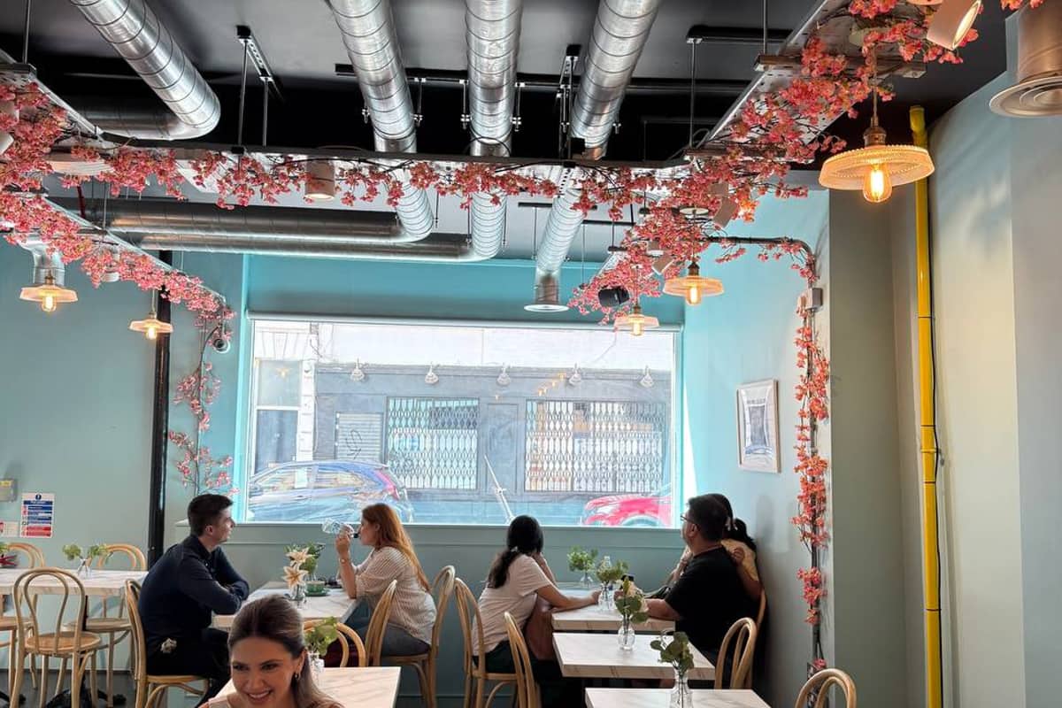 A beautifully designed 2-floor 1,300 sq ft space in the heart of Fitzrovia, offering a warm, whimsical and highly photogenic setting that instantly draws people in. The interior blends soft pastel tones with marble counters, natural wood seating and cascading cherry blossom décor, creating a calm yet playful atmosphere that feels unlike anywhere else in London.