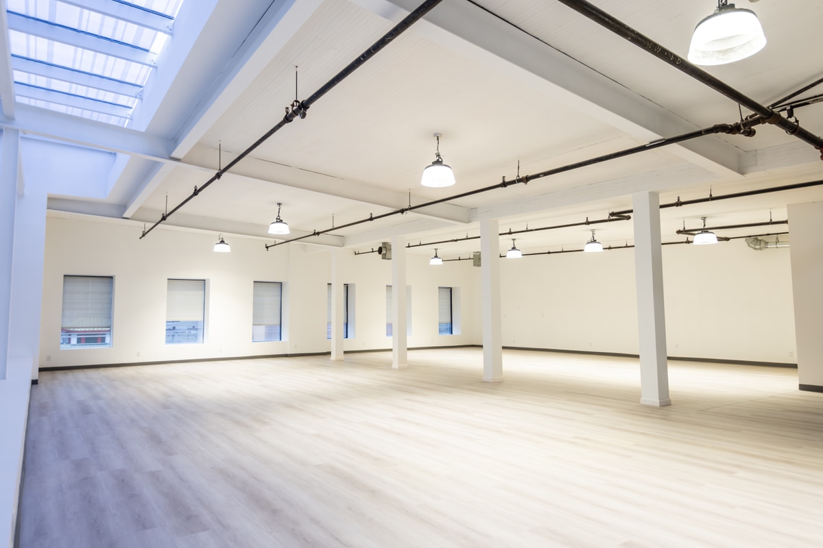 Newly renovated, modern, airy commercial loft in prime downtown location. Over 3,500 sq ft of open space with incredible natural light exposure due to corner unit, high ceilings and 12 skylights. Brand new: HVAC units, modern floors, and private, handicap accessible bathroom. Prime downtown location close to all public transit. Space is very versatile - perfect for events, showrooms, galleries, co-working space and more. Note: building access hours are 9:00am - 8:00pm.