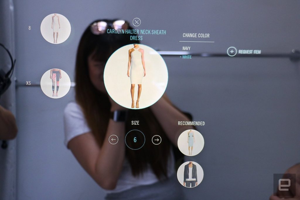 Next to the beauty space were racks of clothes and interactive fitting rooms. Each fitting room was equipped with a smart mirror, which allowed customers to search for different colors and sizes, or select new items. Forget about having to go back into the store or finding someone to assist, customers could simply enter what they want on the screen and never leave the fitting room. The mirror detects the RFID tag on the clothes they brought in and lists them on the interactive screen. Once they’ve made up their mind, they can check out from the fitting room, elsewhere in the store, or at home with the Marie Claire mobile app. And for customers who love window shopping, the shop featured a giant touchscreen on the outside shop window. This allowed passersby or curious customers to browse what’s inside the shop without actually placing a foot inside.
