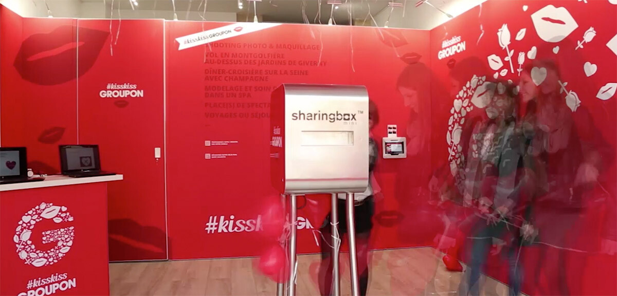 The GROUPON group shopping site launched its pop-up store for two days – the day before and the day of Valentine’s Day – to offer the possibility of finding the perfect gift for your other half. Using a space located in the heart of the Haut Marais, GROUPON played up the theme of its “Kiss Kiss” pop-up store.  The brand, known for its unique experiences, chose engaging window displays to entice passersby. Plus, a brand associate was there to present all the offers available: for example, you could find a voucher for a meal in a 5-star restaurant, a parachute jump, a spa treatment, a photo shoot, a dance class … something to please everyone! To complete the experience, GROUPON also proposed to edit live couple photos.