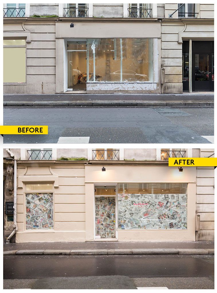 - What we love : The brand is a celebrity favorite and always seen in the press, so the idea of using newspapers in the shop to play on this concept is brilliant