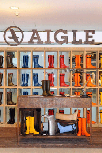 The Aigle Boot Bar, located in the heart of Hong Kong, is located in the world-famous IFC shopping mall in Central. The brand set out to conquer the Asian market, presenting its colorful boots as a museum, surrounded by photographs by Vincent Leroux that retrace the stages of how to manufacture the boot. A noticeable pop-up store in the heart of Hong Kong!