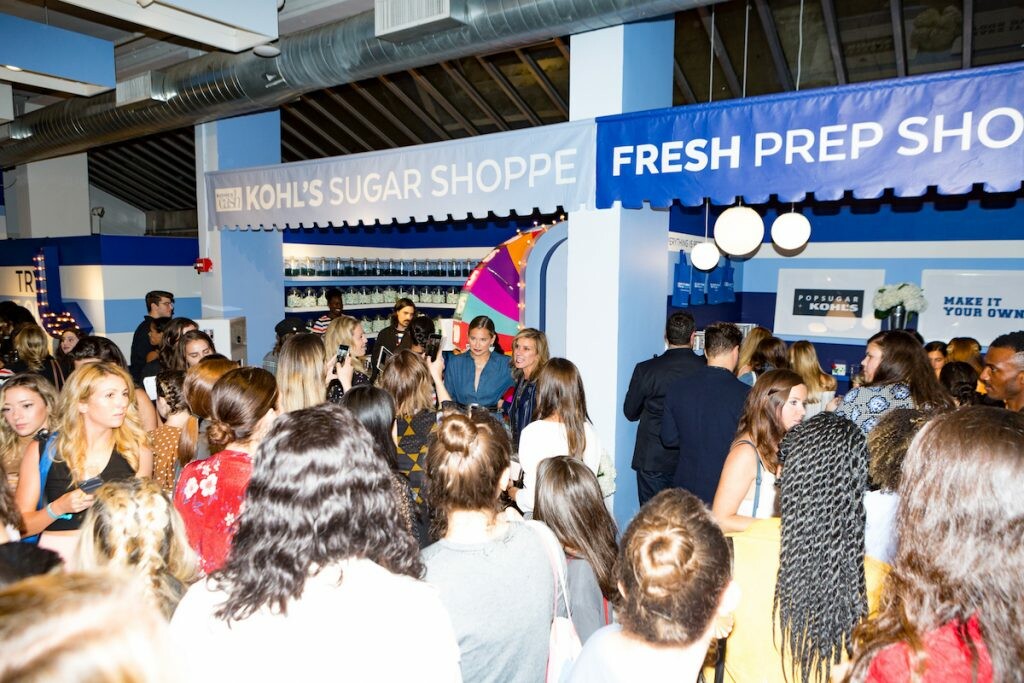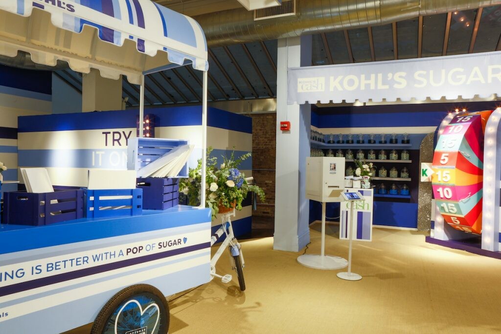 This is not a high-fashion collection for every day; the clothes are clothes you live, play and love in. With the collection’s slogan Everything Is Better With A Pop Of Sugar, what we did was imagine a street scene and then brought [the collection] to life through a flat lay photo trend. [The space] had playful storefront type things, with an interactive candy shop, Kohl’s Cash Wheel, and a section where you can put your own pop of sugar on to a gift bag.