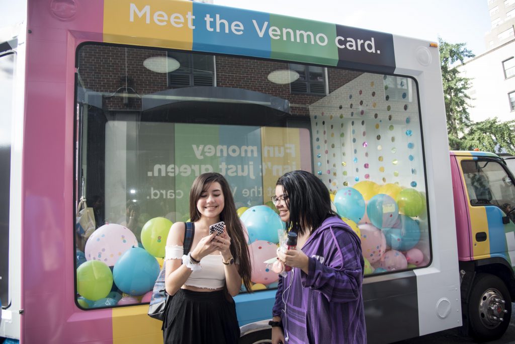 As part of its debit card release, Venmo took over a pop-up truck in the heart of NYU’s campus, for 2 days. As younger, millenial customers are Venmo target market, the company teamed up with Evolve Concepts Inc., an agency specializing in experience-driven concepts and activations.