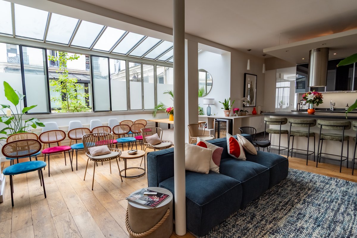 This Loft is a hidden gem just steps away from Place des Vosges. Recently redesigned by an architect, it blends historic charm with a warm, contemporary design, from stone walls and exposed beams to tall windows.