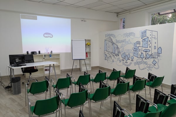 • aule di formazione di diverse capienze, dai nomi ispirati alle energie rinnovabili: sole, vento, acqua