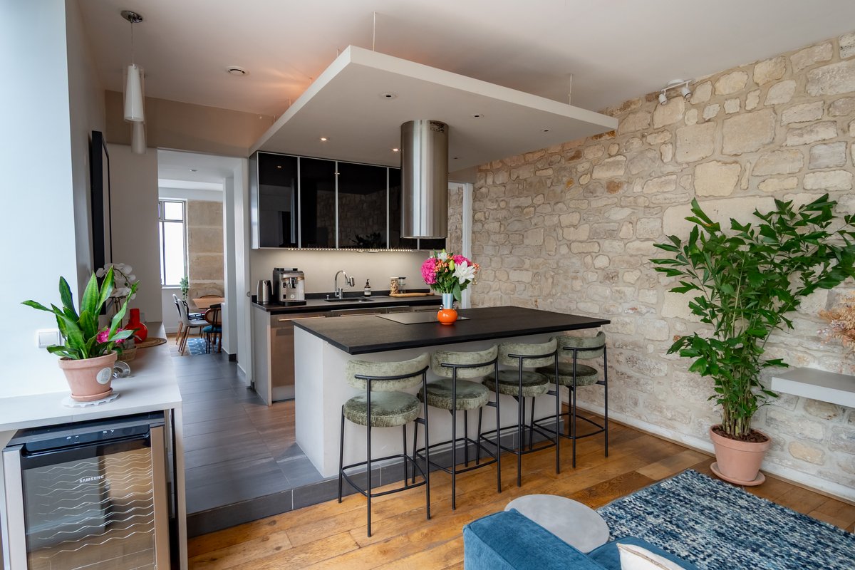 This Loft is a hidden gem just steps away from Place des Vosges. Recently redesigned by an architect, it blends historic charm with a warm, contemporary design, from stone walls and exposed beams to tall windows.