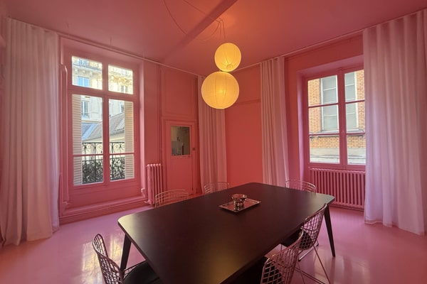 Ici, pas d’haussmannien classique, mais des plafonds à 4,5 mètres, des volumes généreux et une atmosphère unique pensée jusque dans ses moindres détails.