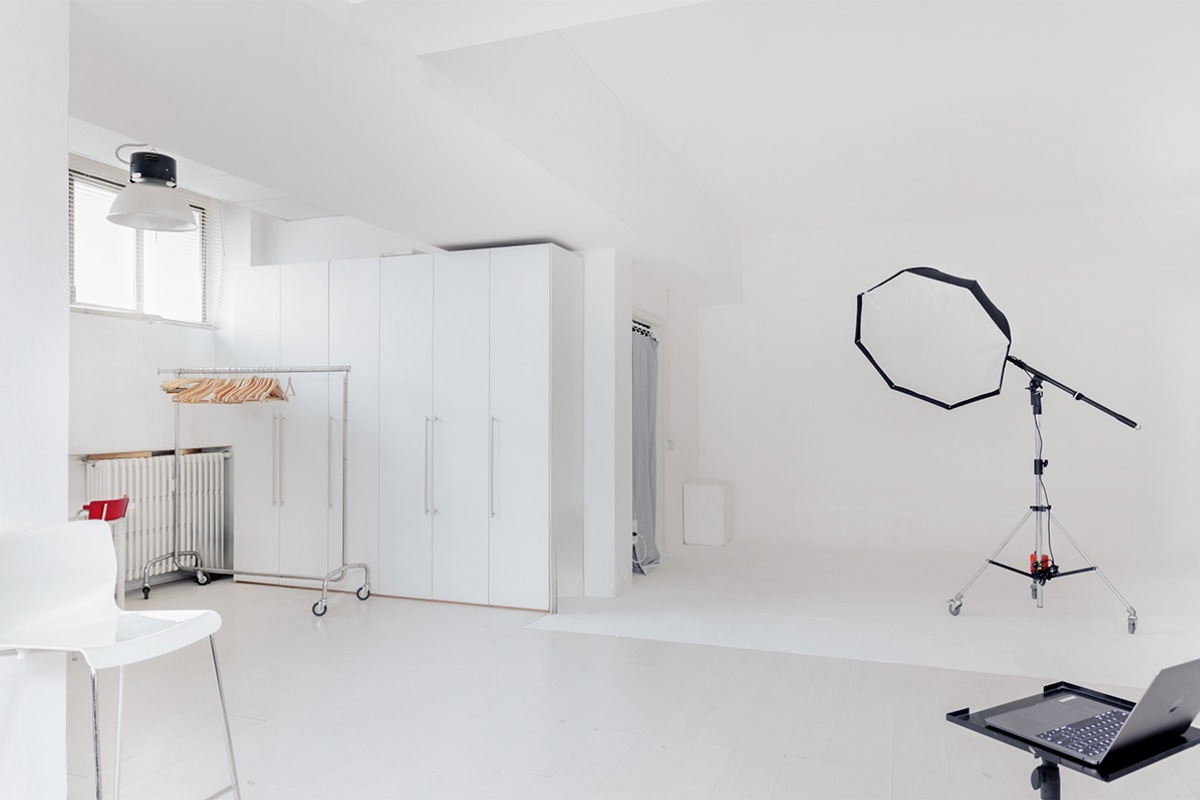 Lo studio di 90 mq complessivi è ideale per giovani fotografi che cercano in un'unica soluzione un0 spazio ben articolato ed attrezzato su misura per i propri progetti ad un prezzo sorprendentemente vantaggioso.