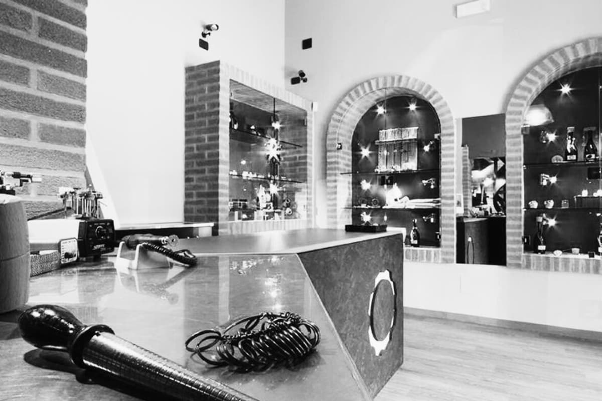 ✨ Eleganza e luce: ambiente bianco, raffinato e luminoso, con 6 vetrine di cristallo illuminate da luci LED.