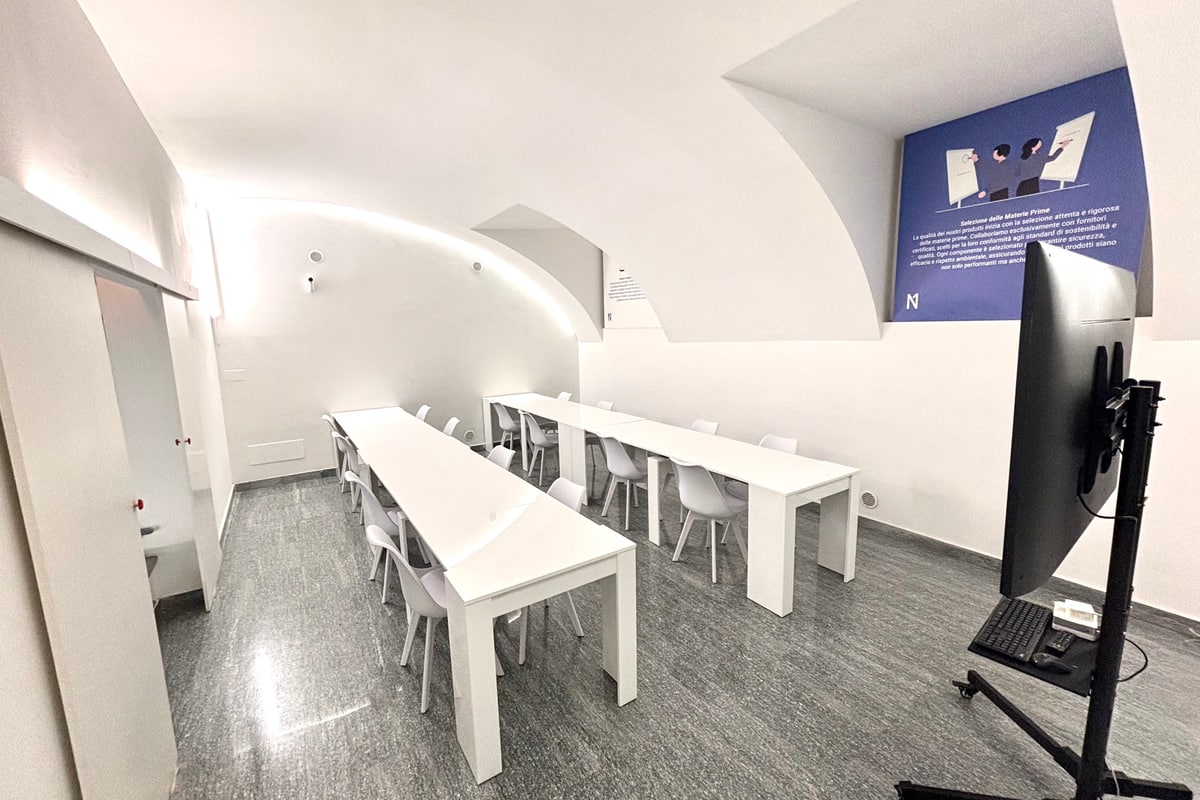 Le Sale Formazione sono situate al piano inferiore della palazzina e sono pensate per ospitare corsi, workshop e attività formative. Gli spazi sono funzionali e versatili, adatti sia a lezioni frontali sia a lavori di gruppo, e consentono diverse configurazioni di allestimento. Le sale sono dotate di connessione Wi-Fi ad alta velocità, sistema di proiezione, impianto audio di supporto, illuminazione regolabile e climatizzazione, garantendo comfort e praticità durante le attività formative. La...