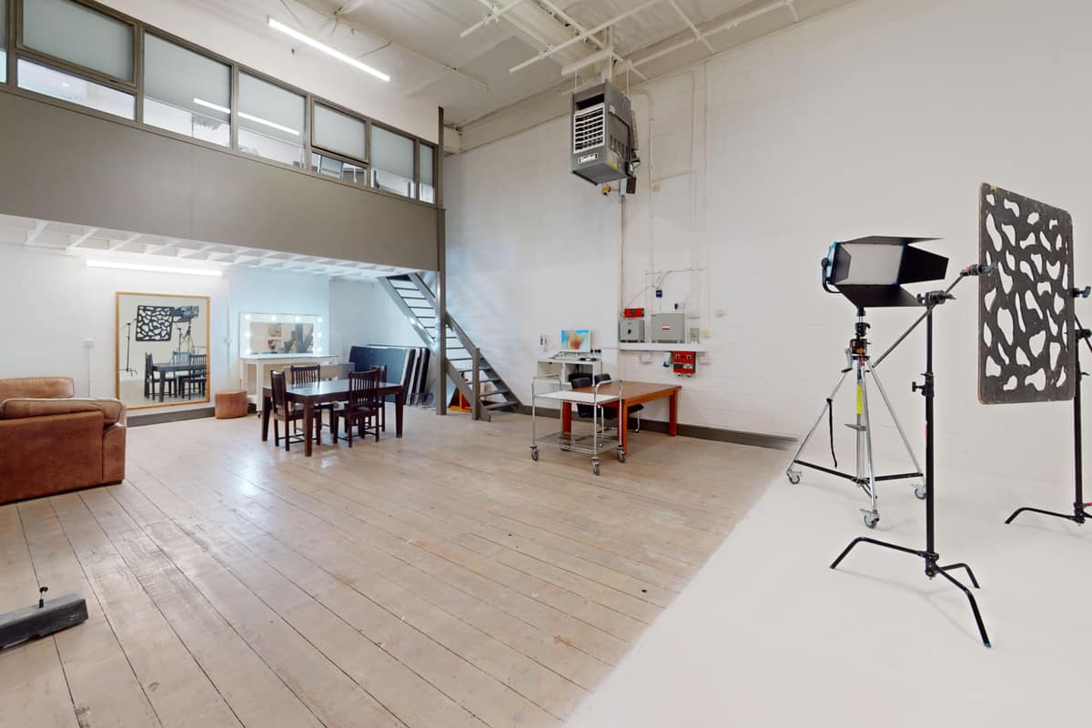 There is a separate hair and make up area on the mezzanine and a client area on the main studio floor with Apple Computer and Bose Sound System provided. Pitch pine floor boards cover the ground floor.
