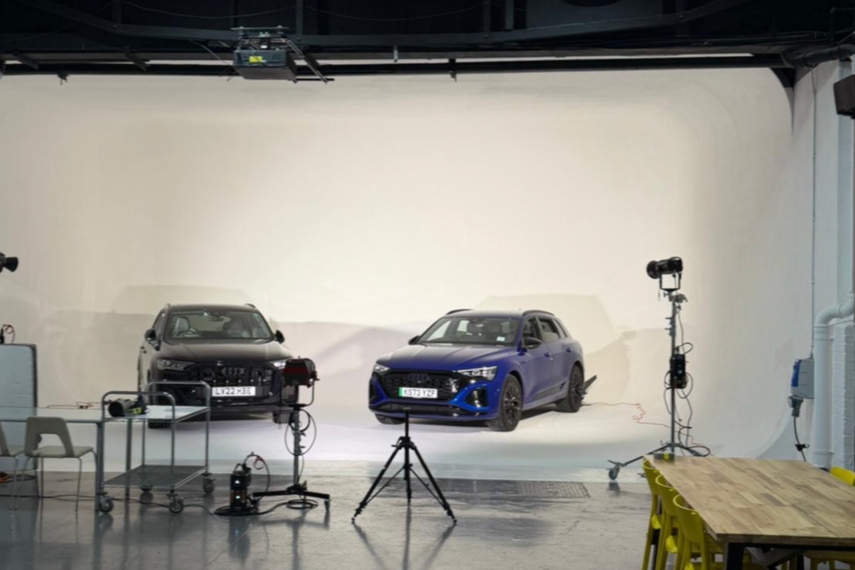 Our Studio has a large wrap around infinity cove, perfect for car shoots with drive in access from our loading bay. With a separate split level hair and make up area and over 2000sq ft to play with, the studio can accommodate a large crew and equipment.