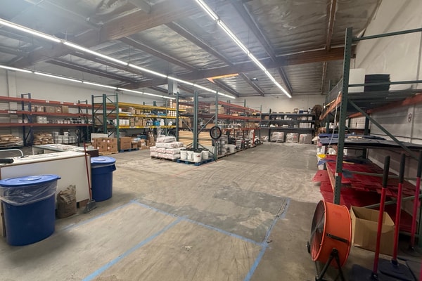 Shared warehouse space with pallet racks in place. Approx up to 2K sq ft available.