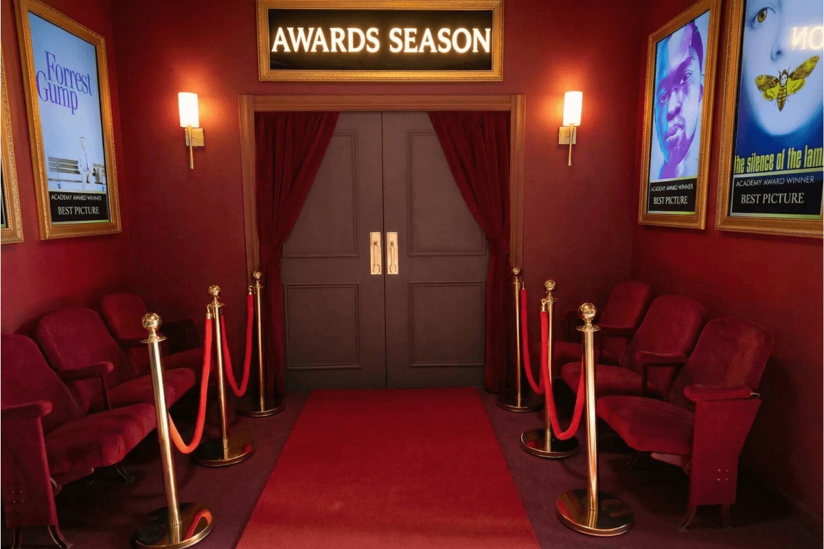 Awards Season is built for main-character energy. Rich red walls, theater-style seating, framed poster moments, rope-and-stanchion details, and customizable TV screens that display your logos, event graphics, client names, or promotional videos recreate the feeling of premiere night on a highly shootable scale. It's your mini award show, press step-and-repeat, and best of the year backdrop all in one—now with the ability to fully brand the experience for your client or event. Use this set whe...