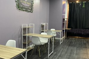 Magical, elegant, and luxurious is just a few words to describe the look and feel of this uniquely designed space. Contemporary and sophisticated, with varying shades of purple, gold accents, tufted chairs, floral decor, customizable ambient lighting, Color change L.E.D lights, and a movable floor plan, allows for a variety of perfectly photographable events that look great from every angle.