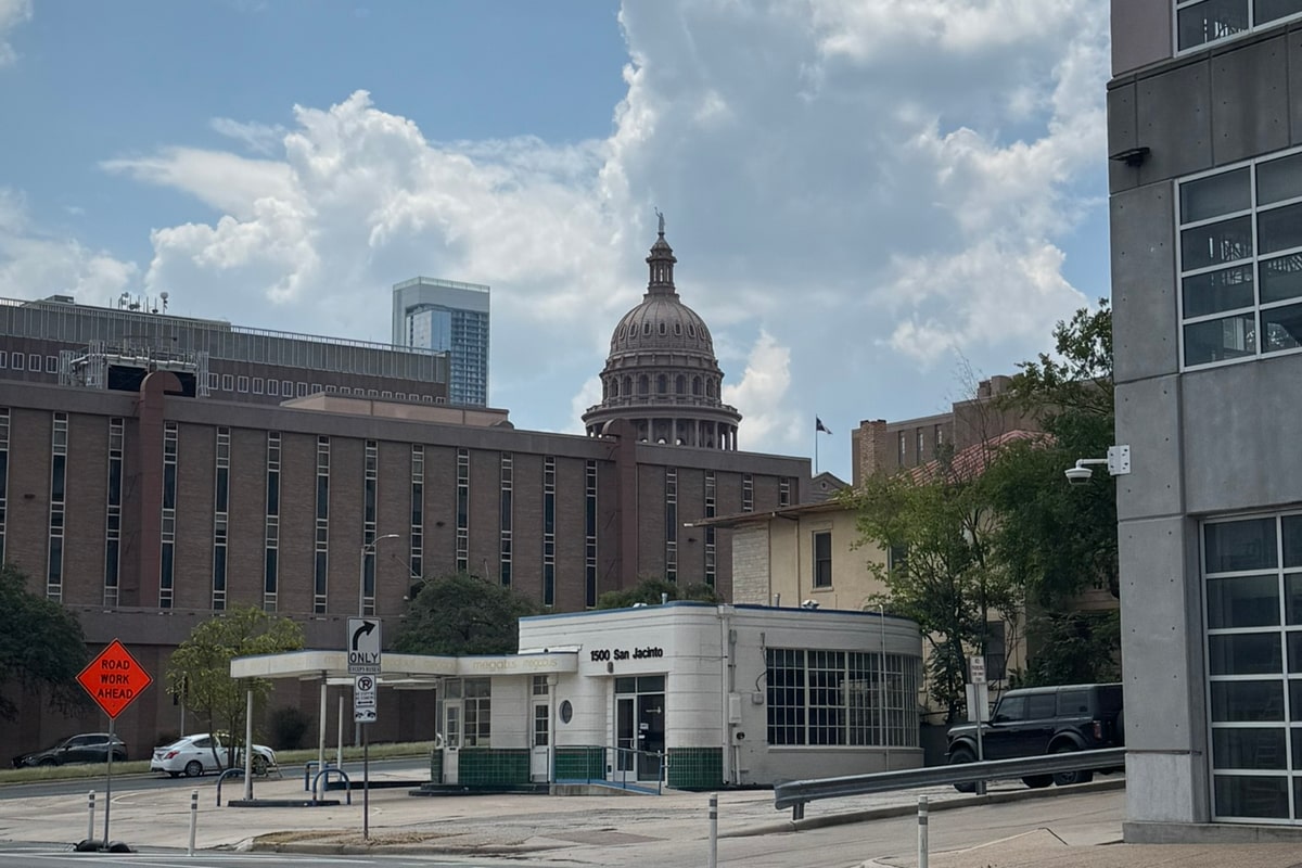Expansive outdoor space visible to both 15th Street and San Jacinto traffic